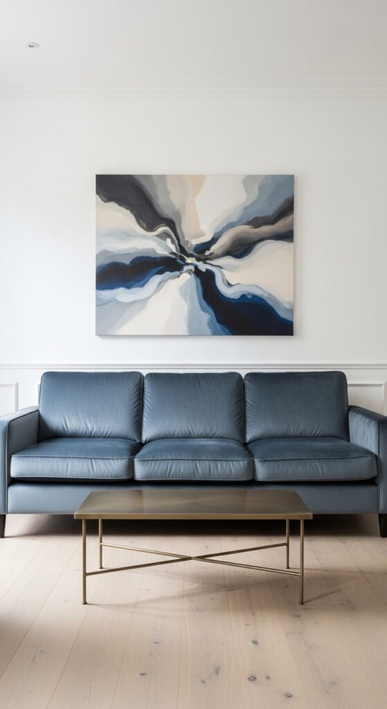 Budget tip: Steel blue and dusty blue velvet sofas are widely stocked because they are easy to sell — which often means better pricing. Look for tight-back styles for durability and clean line aesthetics. A steel blue velvet sofa can anchor an entire neutral room without requiring many other accessories.