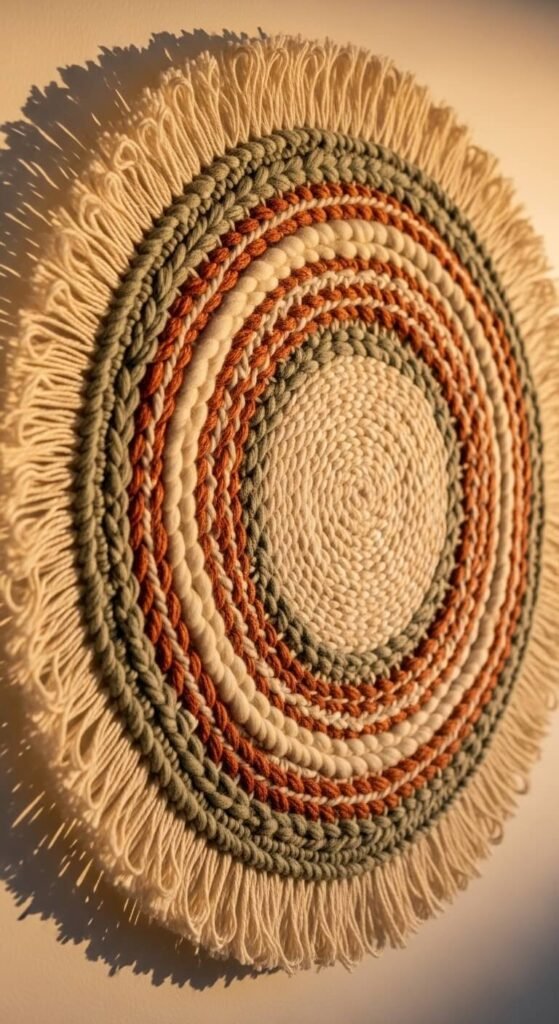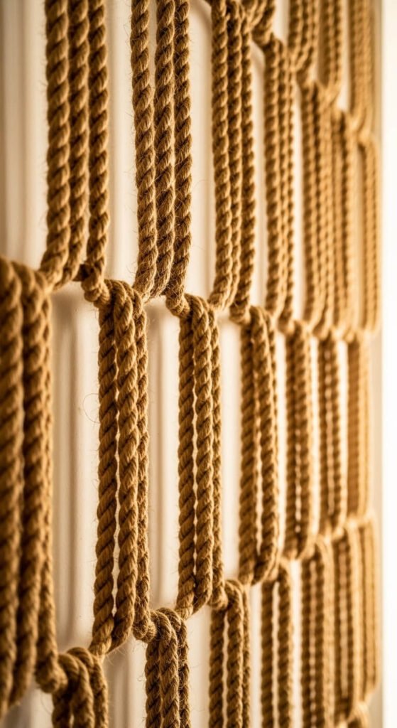 Rope and jute are underrated as wall decor materials. Thick sisal or manila rope coiled into wall art adds serious texture for almost no money. Glue rope coils onto a plywood backer in circular or abstract patterns. Paint the backer the same color as your wall so only the rope reads as a 3D element. Rope baskets hung flat against a wall also work well in clusters. This is one of the most budget-friendly DIY options on this list — most projects cost under $20 in materials.