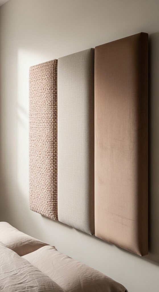 Upholstered wall panels are a designer trick that’s easier than it looks. Wrap plywood or foam board in fabric of your choice, staple the edges to the back, and hang like a picture. Boucle, linen, and velvet all create strong tactile texture. Hang three or four matching panels in a grid for a hotel-like headboard wall. Total cost for a full wall treatment using affordable fabric can be under $100. These panels also add sound insulation — a useful side effect in shared-wall apartments.