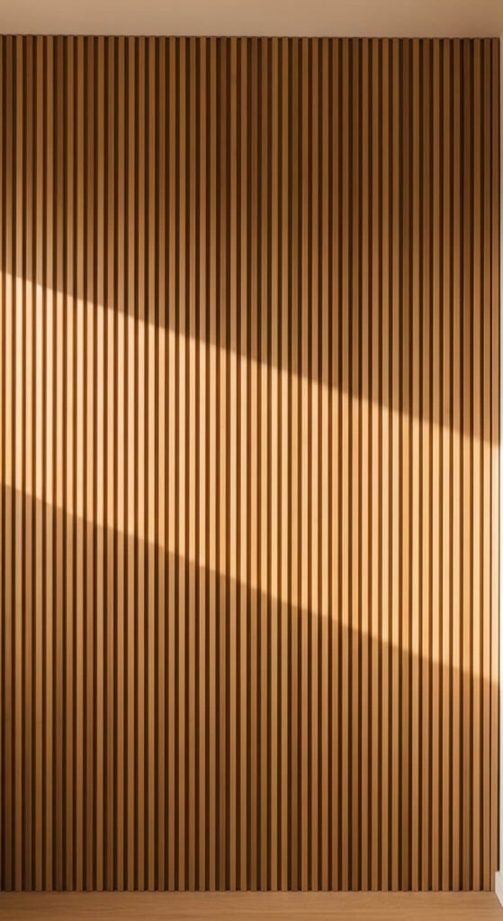 Bamboo slat panels are one of the biggest trends in affordable wall texture right now. Pre-made panels come in 4×8 foot sheets that cut with a standard handsaw. They attach to drywall with construction adhesive or clip systems. The vertical lines make ceilings feel taller. Natural bamboo tones work with warm and cool palettes alike. A full accent wall typically costs $150–$300 depending on room size. Pair them with warm-toned bulbs to bring out the golden amber in the bamboo grain.