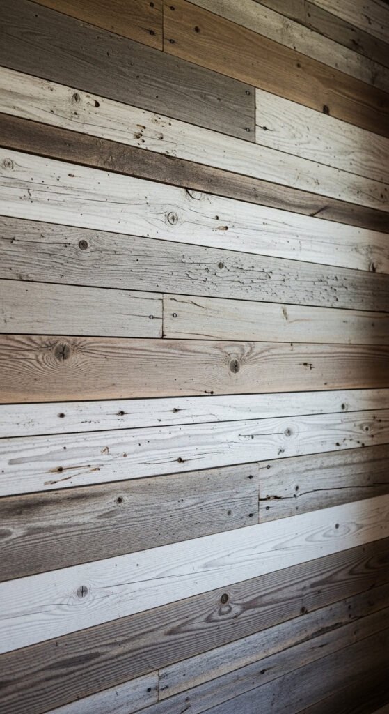 Old wood carries history — and that shows on your wall. Reclaimed wood panels can be sourced from salvage yards, Habitat for Humanity ReStores, or even old pallets. Sand lightly, seal with matte polyurethane, and nail or glue planks directly to drywall. No special skills required. Mixing plank widths adds more visual interest. The variation in color and grain means no two walls will ever look the same. A great choice for living rooms, home offices, or behind a bed.