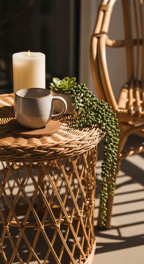 13. Add a Wicker or Rattan Side Table