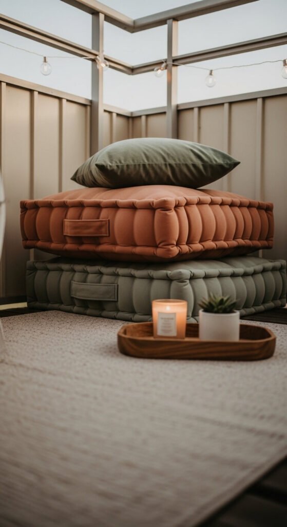 Floor cushions make a small balcony feel like an outdoor living room.