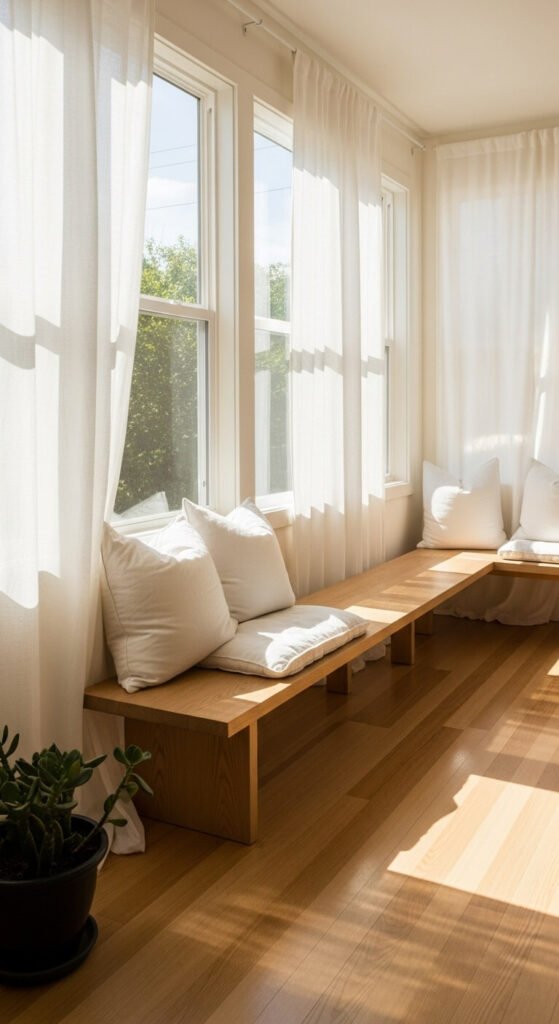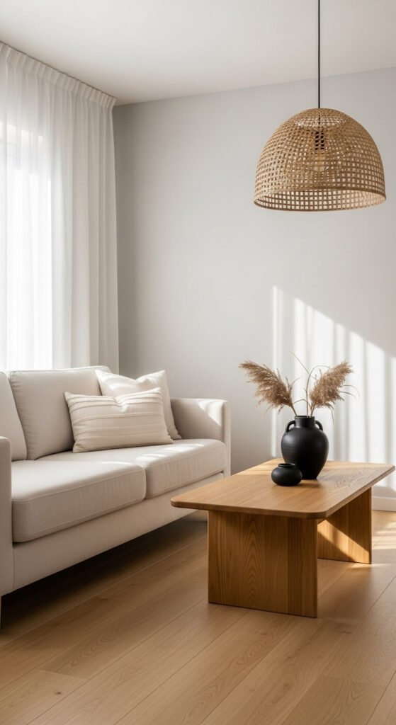 Place them at varying heights using plant stands or stacked books. Plants purify air and bring life to neutral spaces. They’re the easiest way to add color while staying true to the Japandi palette.