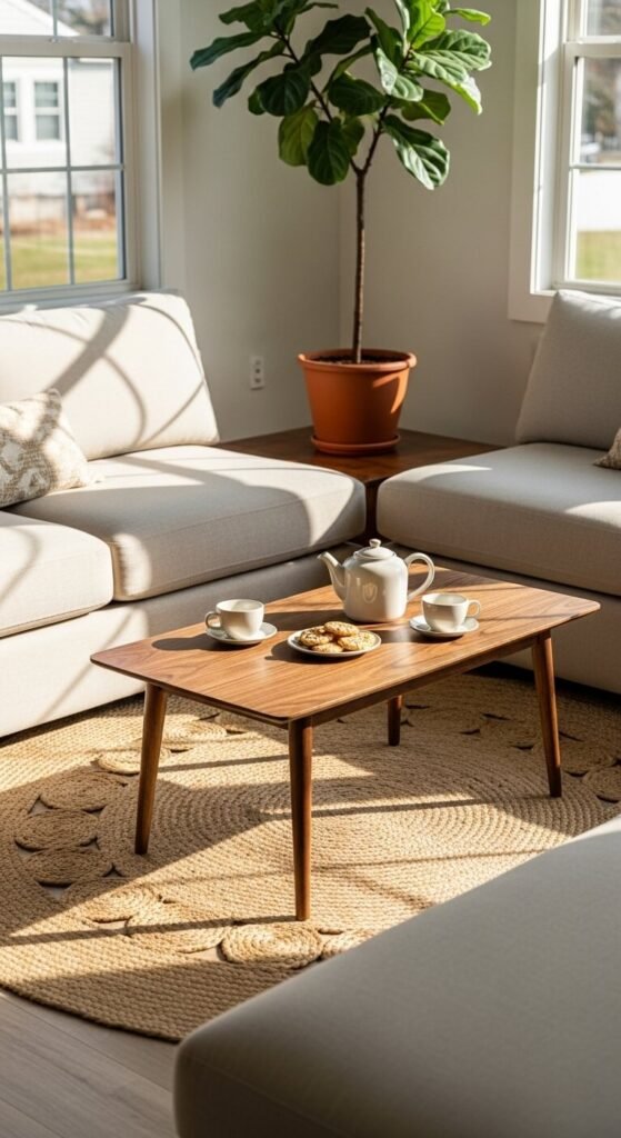 Pair with a coffee table at a similar height. This layout encourages slower living and casual gatherings. Low furniture also makes ceilings appear higher, which helps small spaces feel more open.