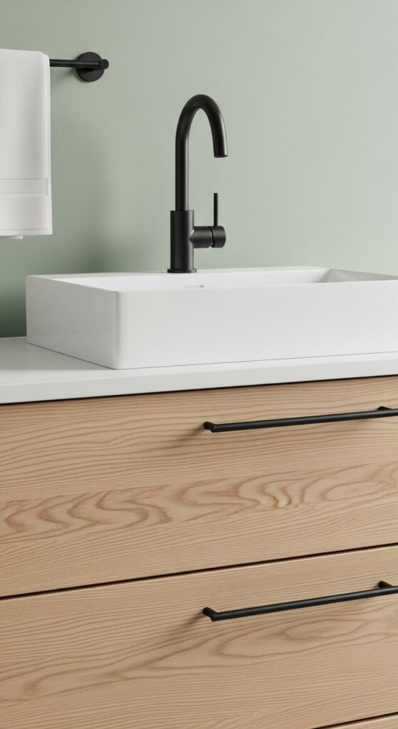 Swap shiny metal for matte black handles, faucets, and light fixtures. The contrast against light backgrounds is striking.