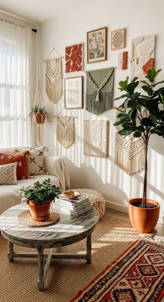 Boho wall art transforms blank spaces into personal sanctuaries filled with warmth and character. This style celebrates natural materials, handmade touches, and a relaxed aesthetic that feels collected over time rather than perfectly curated. Whether you’re working with a small apartment or a spacious home, these ideas range from budget-friendly DIY projects to statement pieces that anchor entire rooms. You’ll discover how to layer textures, mix patterns, and create visual interest without spending a fortune. Ready to infuse your space with laid-back charm? Let’s explore wall art ideas that capture the boho spirit.