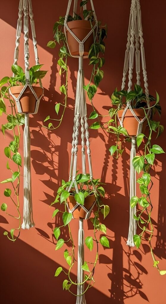 Macramé Plant Hangers with Trailing Greenery