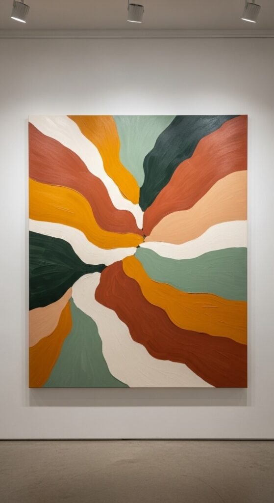 Abstract art in earth tones anchors boho rooms. You don’t need art school skills to create these.