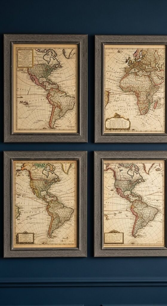 Old maps bring character and conversation starters. They reference adventure without being too literal.