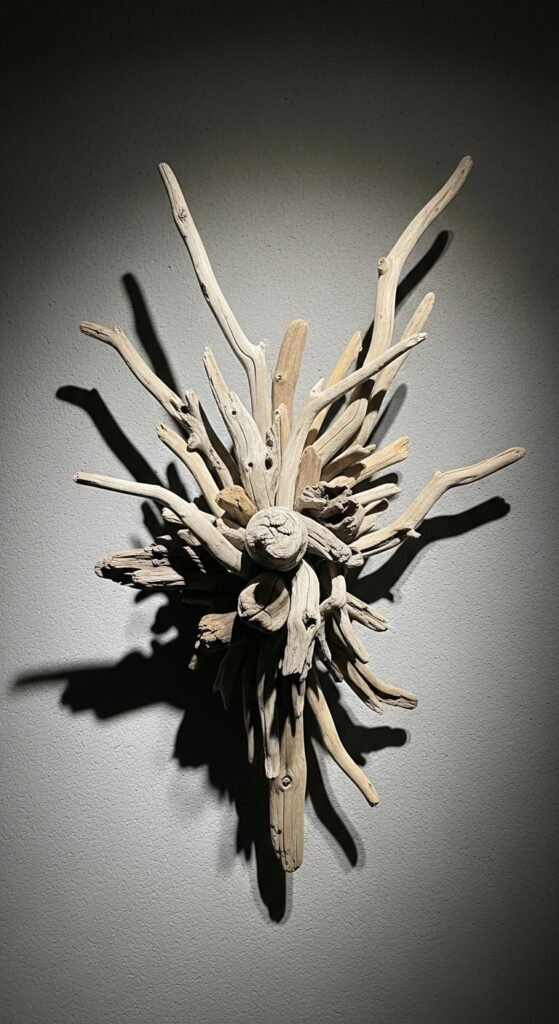 Bleach driftwood for lighter tones or leave wood natural. Secure pieces with screws or strong glue. This project costs only your time.