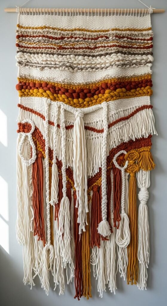 Mix techniques freely—weaving, fringe, tassels, wrapped sections. The imperfect, handmade quality fits perfectly with boho aesthetics.