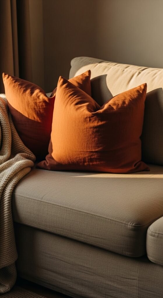 1. Terracotta Throw Pillows on a Neutral Sofa