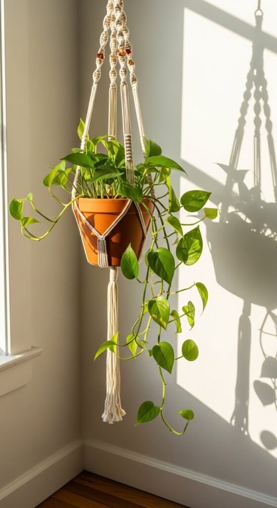 11. Terracotta Hanging Planter in the Corner