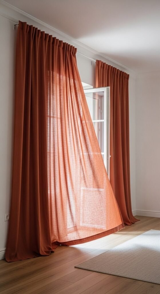 12. Terracotta-Toned Linen Curtains