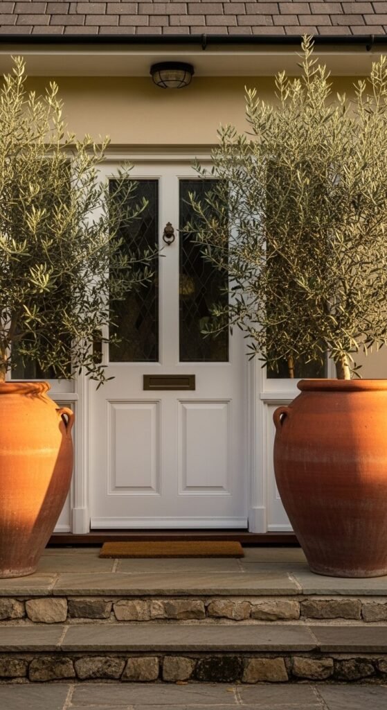 Two large terracotta urns flanking your front door is the most classic Mediterranean move in the book. It signals warmth, tradition, and care. Fill them with olive trees, rosemary bushes, or lavender for full Mediterranean authenticity. Large terracotta urns can be found at garden centers for $20–$60 depending on size. The bigger, the more dramatic. They weather beautifully outdoors — the patina that develops over time only makes them look more expensive and intentional. Simple, timeless, and completely transformative for any entryway.