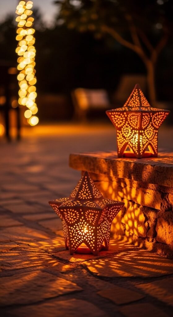 22. Terracotta Star Lanterns for Outdoor Lighting