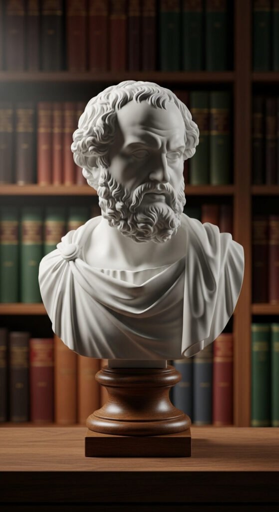 Classical busts add instant culture and visual height. HomeGoods sells resin versions for $15-30 that look like real marble. Place on bookshelves, mantels, or desk corners. Greek philosophers and Roman emperors fit the theme perfectly. Thrift stores sometimes have these overlooked and underpriced. White or aged ivory colors work best. They create conversation starters and fill vertical space elegantly.