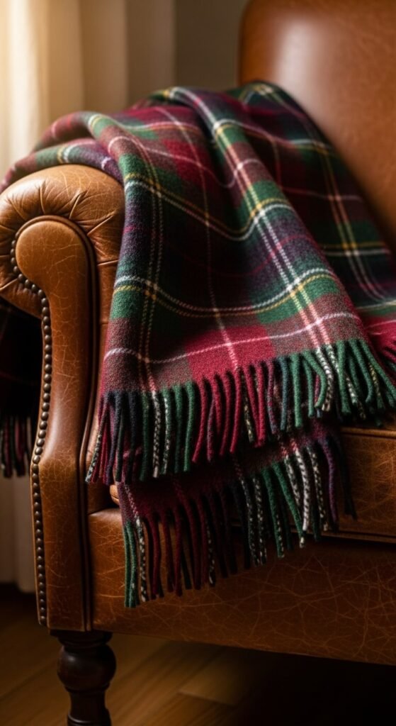 Plaid blankets add warmth and traditional academic pattern. Pendleton-style blankets from HomeGoods cost $30-50. Drape over chairs, sofas, or bed ends. The pattern adds visual interest without overwhelming. Wool or fleece both work—choose based on climate. Store extras in decorative baskets for easy access. They’re functional for cold study sessions and photogenic when styled casually.