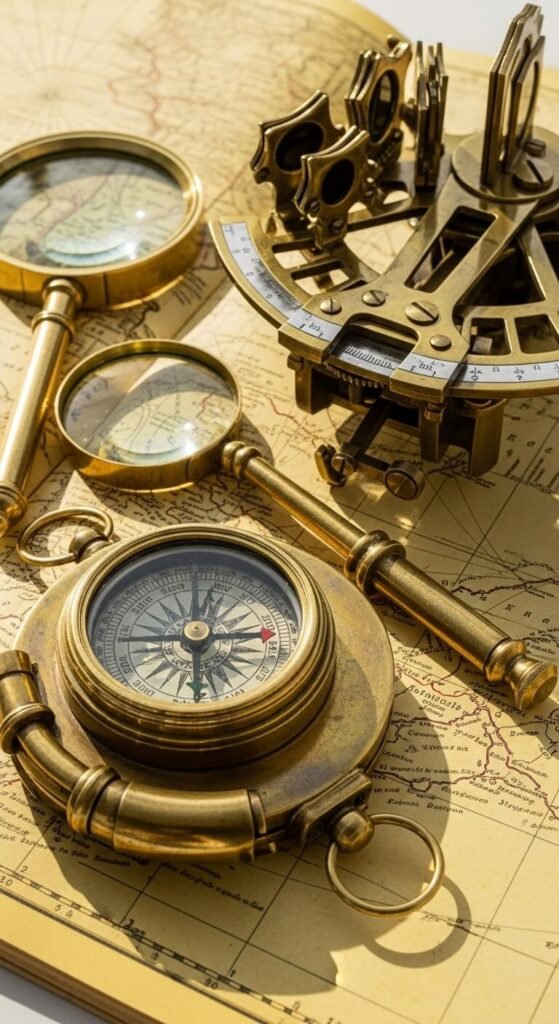 Old compasses, magnifying glasses, and measuring tools blend science with style. Antique stores price them $10-40 each. Display in groups on shelves or in shadow boxes. Non-functional pieces cost less and serve decoration only. The brass and wood combinations match other elements perfectly. They suggest curiosity and learning through tangible objects. Layer with books for composed vignettes.