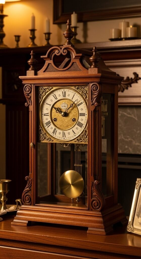Clocks add sound and movement beyond visual interest. Working vintage clocks from estate sales run $50-150. Non-working ones cost less and still look authentic. The ticking creates ambient sound for studying. Mantel versions fit tight spaces better than floor clocks. Wind-up mechanisms add interaction and ritual. They anchor mantel or shelf displays while serving actual function.