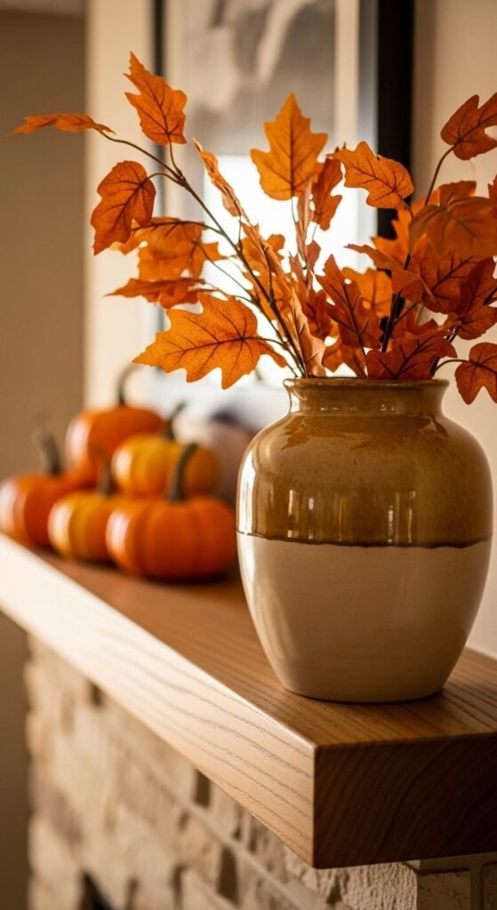 Buy one quality ceramic vase, then change what’s inside it with the seasons. A neutral oatmeal or cream ceramic works year-round. In fall, fill it with dried amber leaves and cinnamon sticks. In winter, add pine branches. In spring, fresh tulips. In summer, a single sunflower. The vase itself never moves — just the contents shift. This is one of the smartest budget approaches to decor because you invest once and the vase stays relevant forever. Seasonal stems cost $2–$10 at grocery stores.