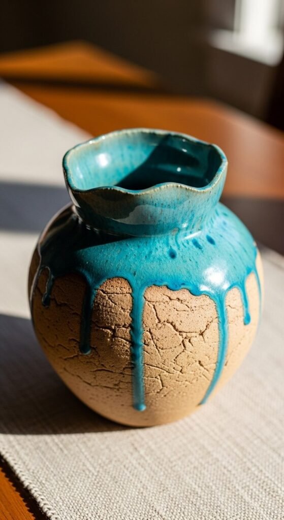 Handmade and imperfect ceramics are the best kind. Wonky rims, visible throwing lines, uneven glazes — these aren’t flaws. They’re the whole point. One genuinely handmade piece carries more visual weight than ten factory-made vases. Source these at local pottery studios, art markets, craft fairs, or small Etsy shops. Prices range widely, but plenty of beautiful student or emerging-artist pieces sell for $15–$40. Place it alone with room around it. The imperfection is the design. Let it be seen.