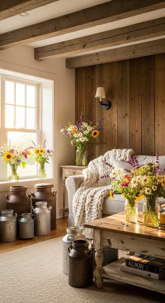 Authentic farmhouse style builds slowly with meaningful pieces, not overnight shopping sprees. Start with one or two elements that speak to you—maybe a reclaimed wood shelf or vintage enamelware pitcher. Add pieces as you find them at estate sales and salvage yards. The best farmhouse homes layer collected items over time, each with its own story. Your space becomes unique because nobody else has your exact combination of vintage finds and handmade touches. Focus on quality materials like real wood, metal, and glass. Skip plastic reproductions trying to mimic age. Real farmhouse charm comes from pieces that have actually lived and worked, bringing their history into your home alongside your own family’s story.