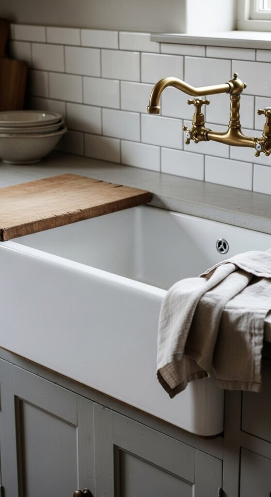 Apron-front sinks define farmhouse kitchens. Porcelain or fireclay versions start around $300-500. Composite materials offer budget alternatives at $200-300.