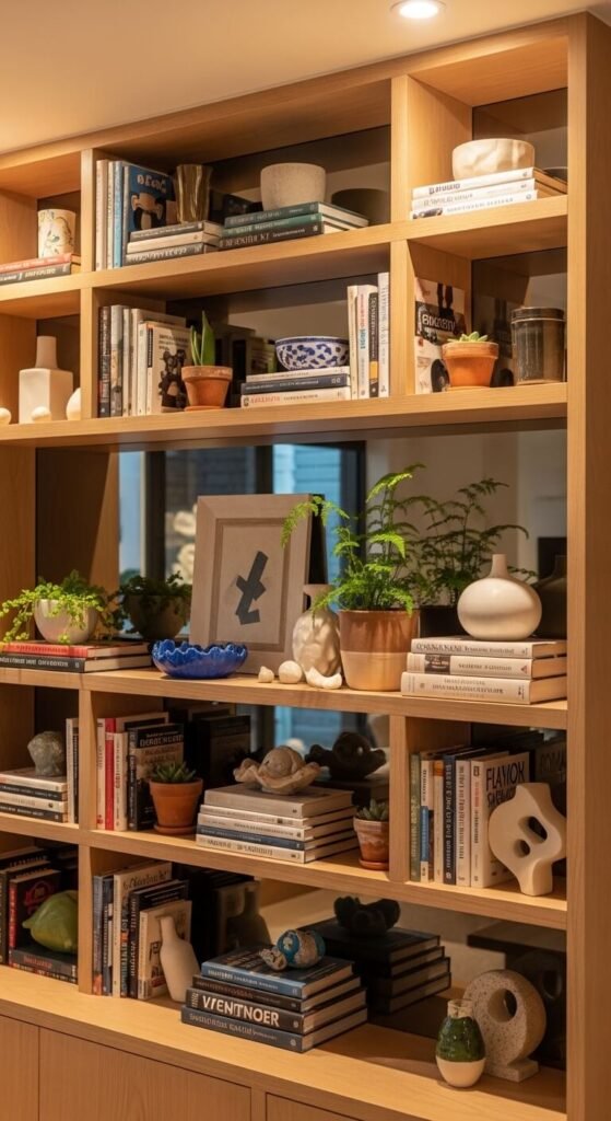 Place a mirror panel behind open shelving and suddenly everything on those shelves looks twice as good. The reflection adds depth and makes the shelf unit appear to recede into the wall. It also bounces the light from any shelf-mounted lighting back into the room. Cut mirror panels to fit the back of existing shelves, or use adhesive mirror sheets available at hardware stores. This works in living rooms, dining rooms, and even kitchens. It’s one of those upgrades that looks incredibly intentional for very little effort.