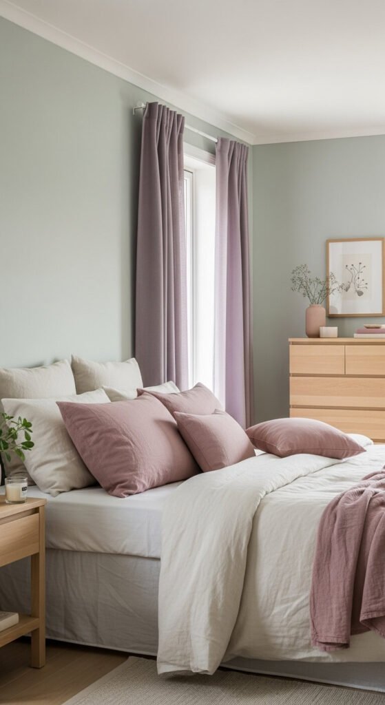 Painting project: One gallon of paint costs $30-40 and covers a bedroom. Choose one soft wall color and build around it. Use white trim for contrast. Add color through textiles and décor instead of paint if you rent. Swap pillow covers seasonally for $10-20 each.