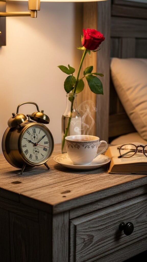 Keep nightstand styling minimal. Pair your clock with one small plant, a book, and a simple lamp. Avoid clutter—cottagecore celebrates simplicity.