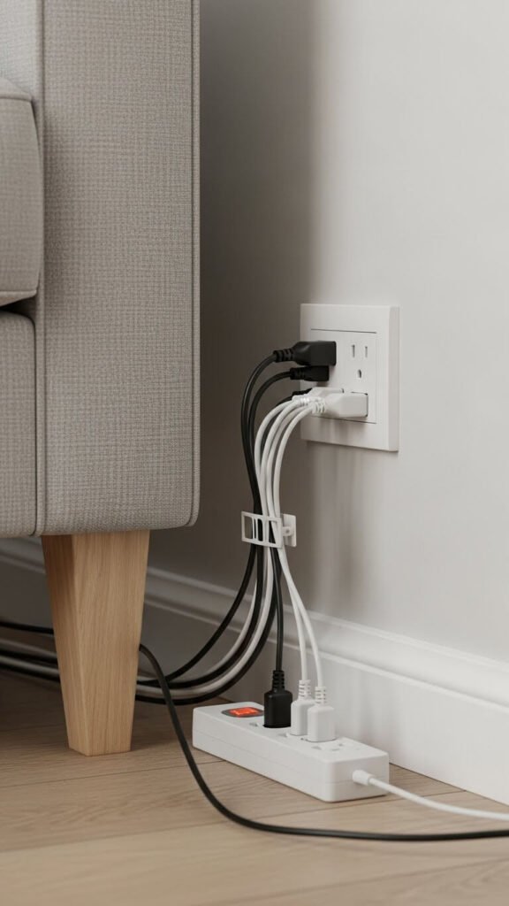 Visible cords break the clean aesthetic. Spending 30 minutes organizing them transforms how your room photographs.