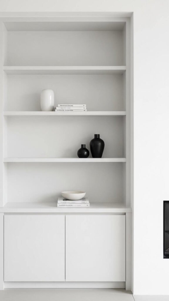 This keeps storage functional without dominating the wall. You’ll dust less and the room stays open.