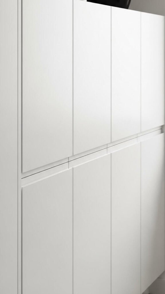Smooth cabinet fronts look cleaner and more modern. This small detail makes a big impact.