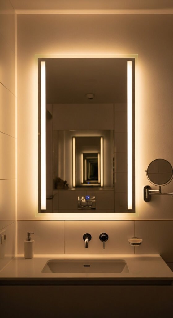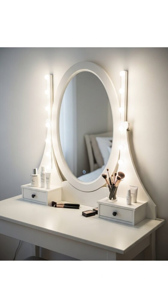 Hollywood-style vanity lighting doesn’t require a custom-built mirror. Stick a neutral white LED strip (4000K is the sweet spot) around the perimeter of any mirror you already own. The even light eliminates the shadows that overhead lighting creates. This is especially useful for foundation, contouring, and eye looks that require accurate color judgment. A simple adhesive strip kit on a rectangular mirror takes about 20 minutes to set up and costs around $12–$18.
