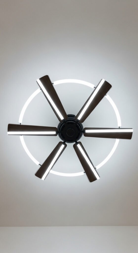 Ceiling fan LEDs are a quirky, budget project that creates a spinning light ring effect when the fan is in motion. Stick a short LED strip along the outer edge of each fan blade. When the fan spins, the lights merge into a glowing circle on the ceiling. Use the same color strip on each blade for uniformity. Make sure the strips are thin and lightweight so they don’t unbalance the fan. This works best with fans that have darker, wider blades for maximum visual impact.