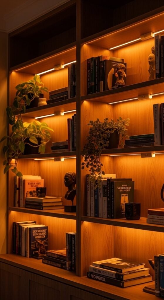 4. Inside Bookshelves for a Library Glow