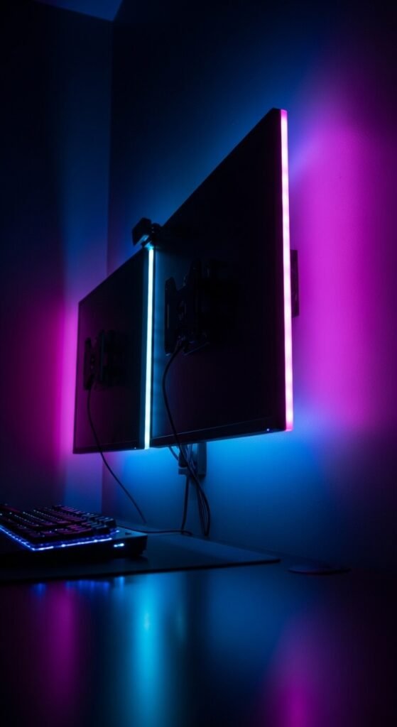 Whether you game or just work from home, monitor bias lighting looks impressive and actually reduces eye fatigue. Stick a color-changing RGB strip along the back panel of your monitor. Set it to match or complement your screen’s dominant color. Many LED strips now sync with music or screen content using apps. Full RGB kits are available for under $20 on Amazon. Pair with a USB power connection so it turns on and off with your monitor automatically.