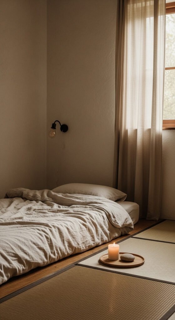 Low furniture brings calm. Platform beds, floor cushions, low coffee tables, and poufs all create a grounded, unhurried feeling in a space. You do not need to replace everything. Start with floor cushions — a few large ones stacked in a corner cost under $40 each and completely change the mood. Lower furniture also makes rooms feel larger. It is harder to feel anxious when you are closer to the ground.