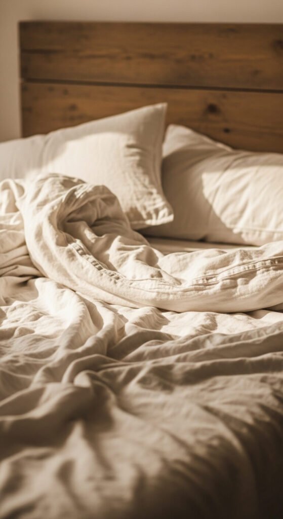 Stop ironing your linen. Wabi-sabi sees wrinkled fabric not as a mess, but as proof of use and life. Let your curtains pool and wrinkle. Let your throw sit exactly where it was last used. Let your bedding settle. The natural looseness of unwashed, un-ironed fabric is one of the most pleasant textures in a home. Linen and cotton soften with every wash, becoming more beautiful the longer they are used. That worn softness is the goal.