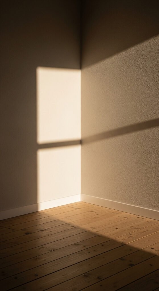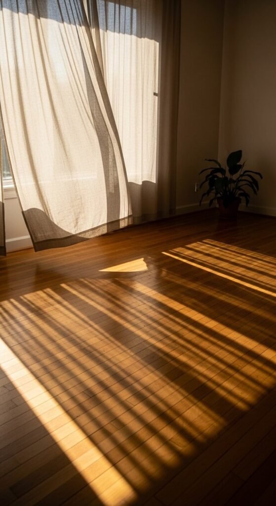 Natural light is the most wabi-sabi design element in your home — and it costs nothing. Instead of controlling light with heavy curtains and overhead bulbs, let it move through your space. Use sheer linen or cotton curtains. Watch how light moves across a wooden floor in the morning. Notice how afternoon shadows change the look of a textured wall. Wabi-sabi design is deeply aware of time passing, and changing light is time made visible. Sit with it.