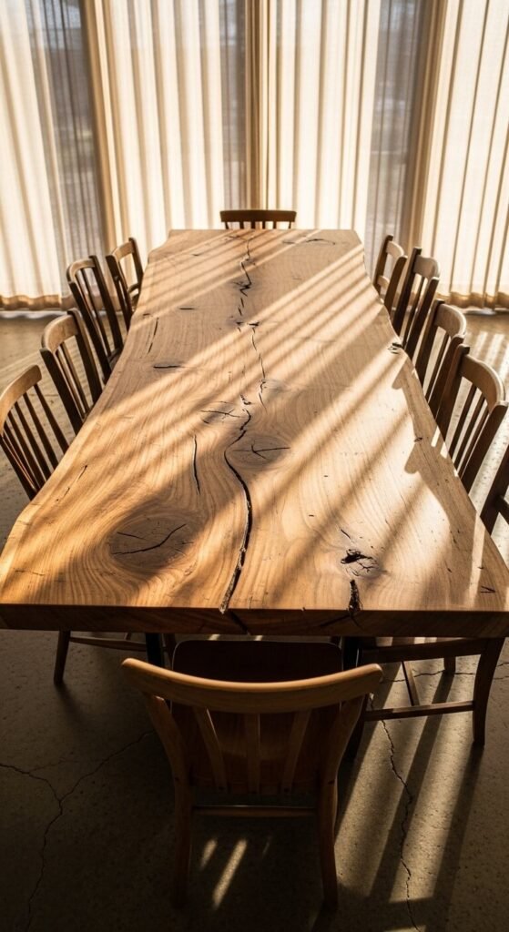 Polished furniture can feel cold and corporate. Raw wood — with its knots, grain, and rough spots — feels warm and alive. Look for live-edge shelves, unfinished lumber slabs, or reclaimed wood at salvage yards. Sand lightly if needed, but skip the glossy varnish. A simple beeswax or oil finish lets the wood breathe. Thrift stores and Facebook Marketplace are full of raw wood pieces for under $50.