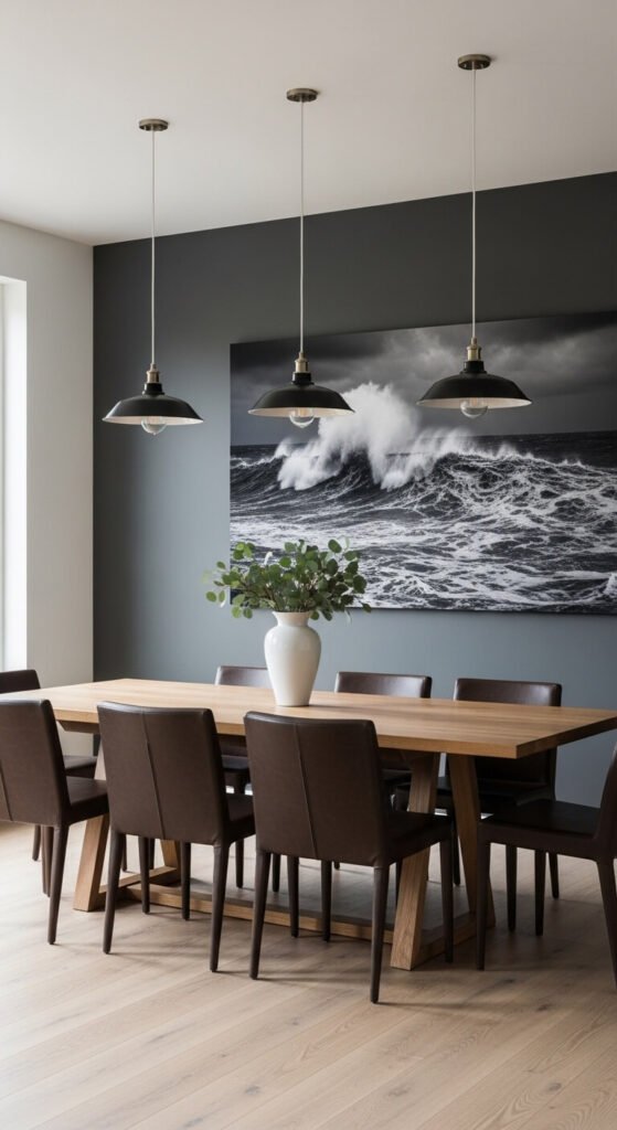 - Large walls need large art — or a curated gallery wall with multiple pieces.