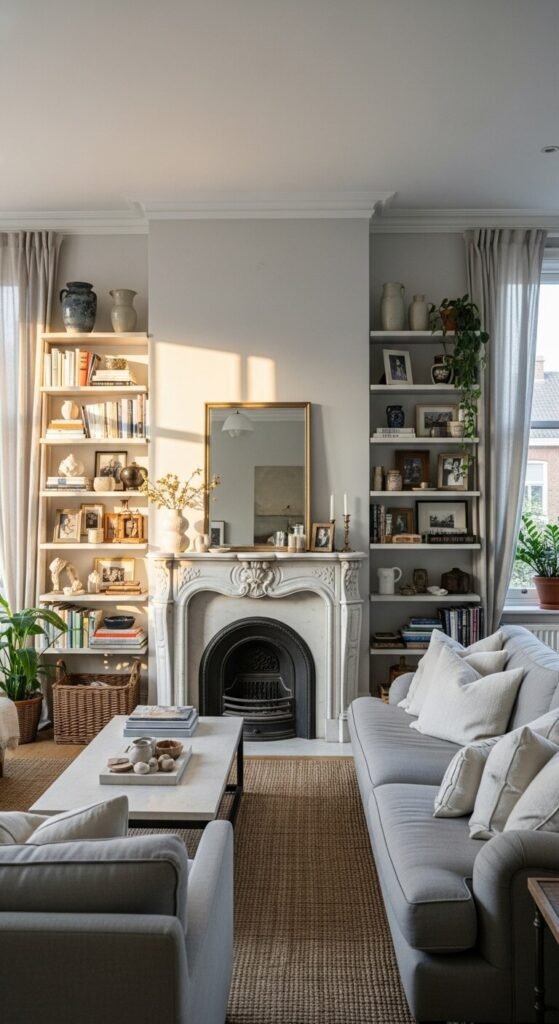 If your room has one of these, your job is mostly to enhance it — not compete with it. Clear the clutter around it, add lighting to draw attention, and arrange furniture so it faces or frames the feature naturally.
