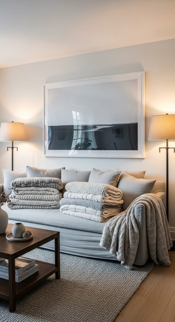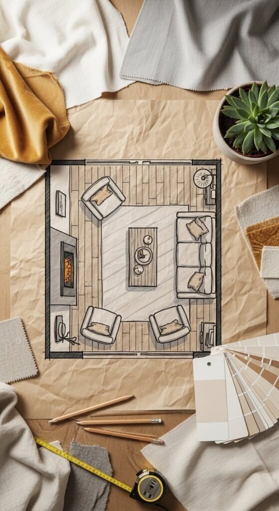 - Side tables, lamps, and accessories should feel like they’re in conversation with it — not fighting for attention