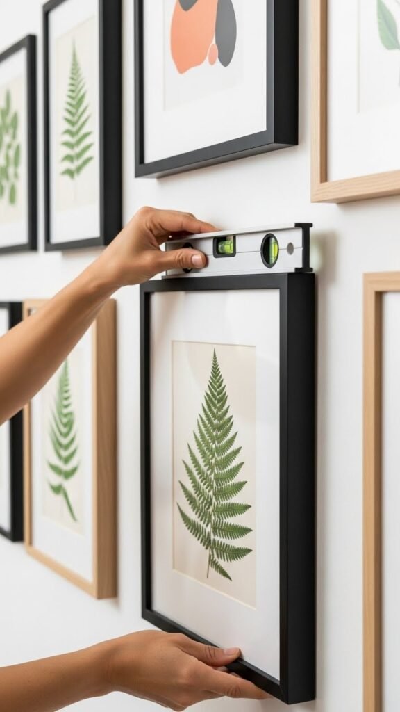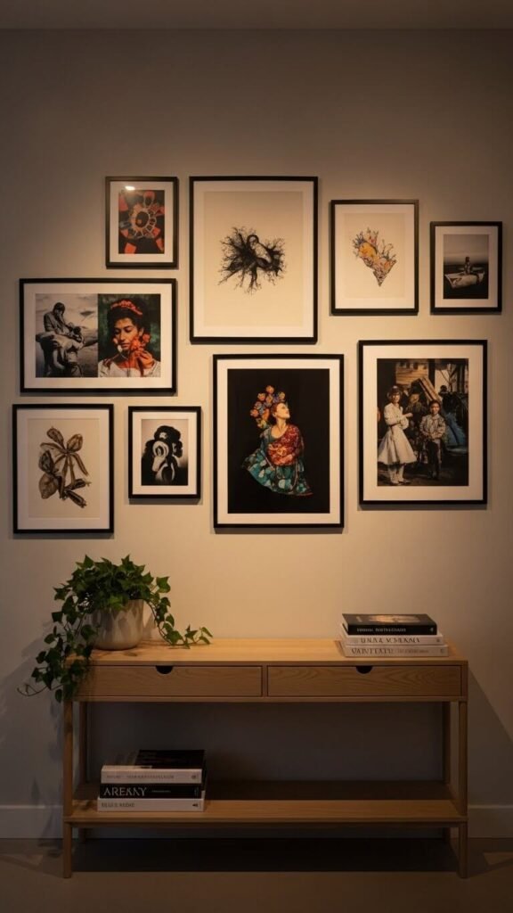 - Frame style: Mix frame sizes but keep the finish consistent (all black, all natural wood, or all white)