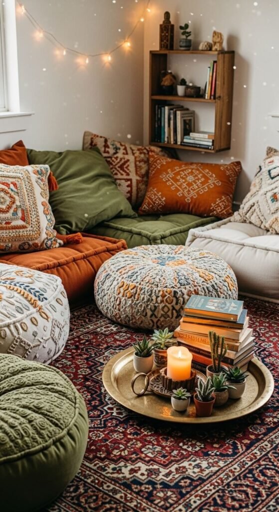 - A floor cushion or pouf for a more casual, bohemian vibe
