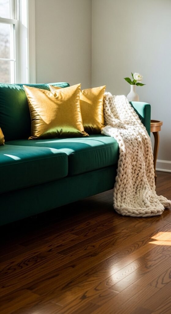 - Soft and structured: Balance a chunky knit throw with crisp, tailored cushion covers