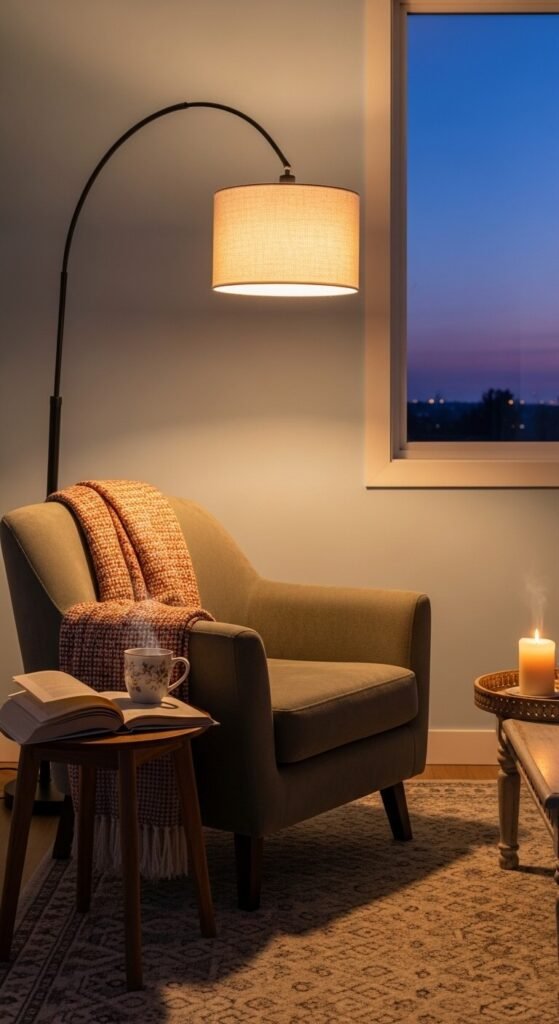 - Task light: A reading lamp beside your sofa or chair